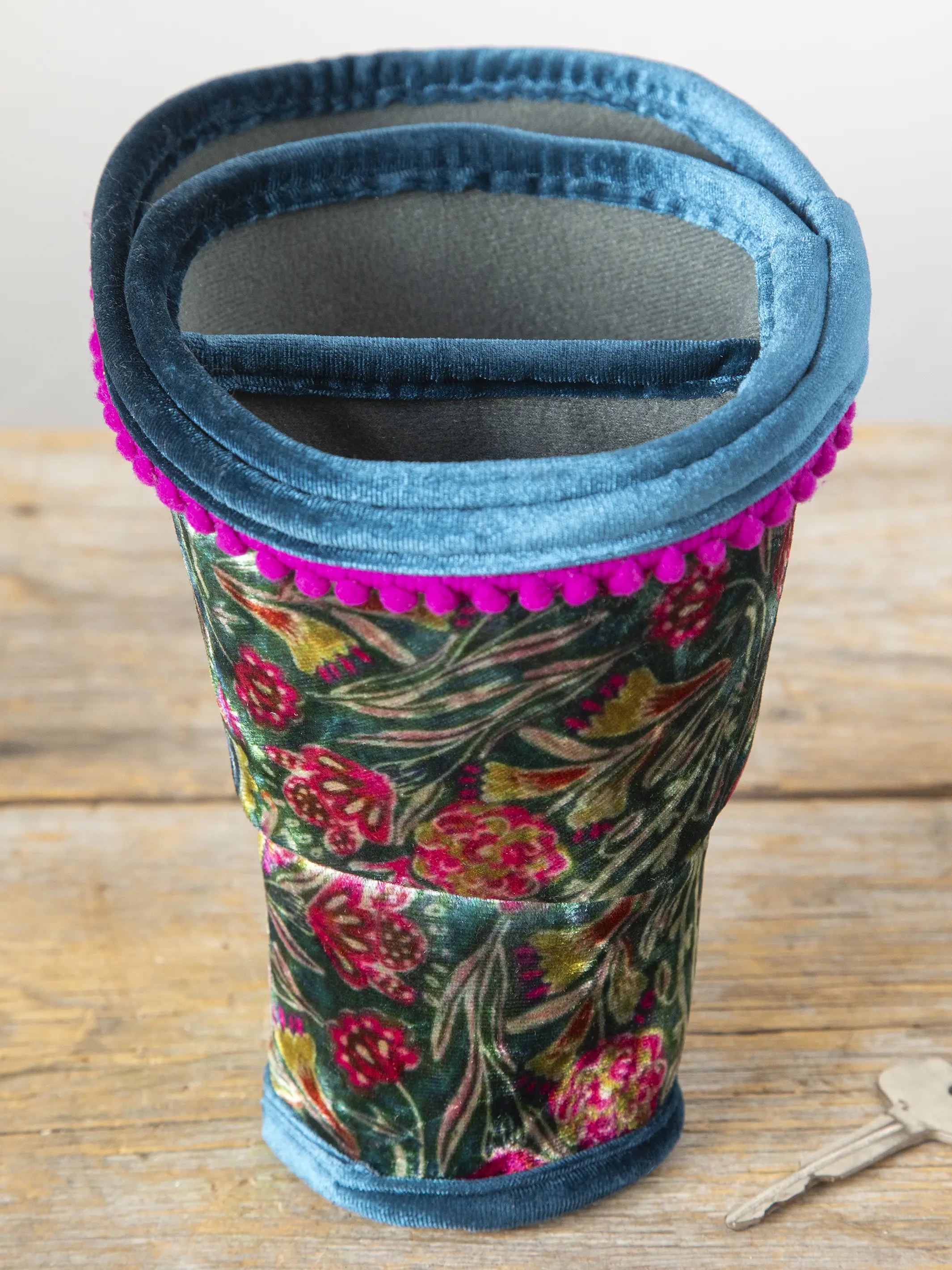 Car Cup Holder Organizer - Green Painterly Vines Velvet