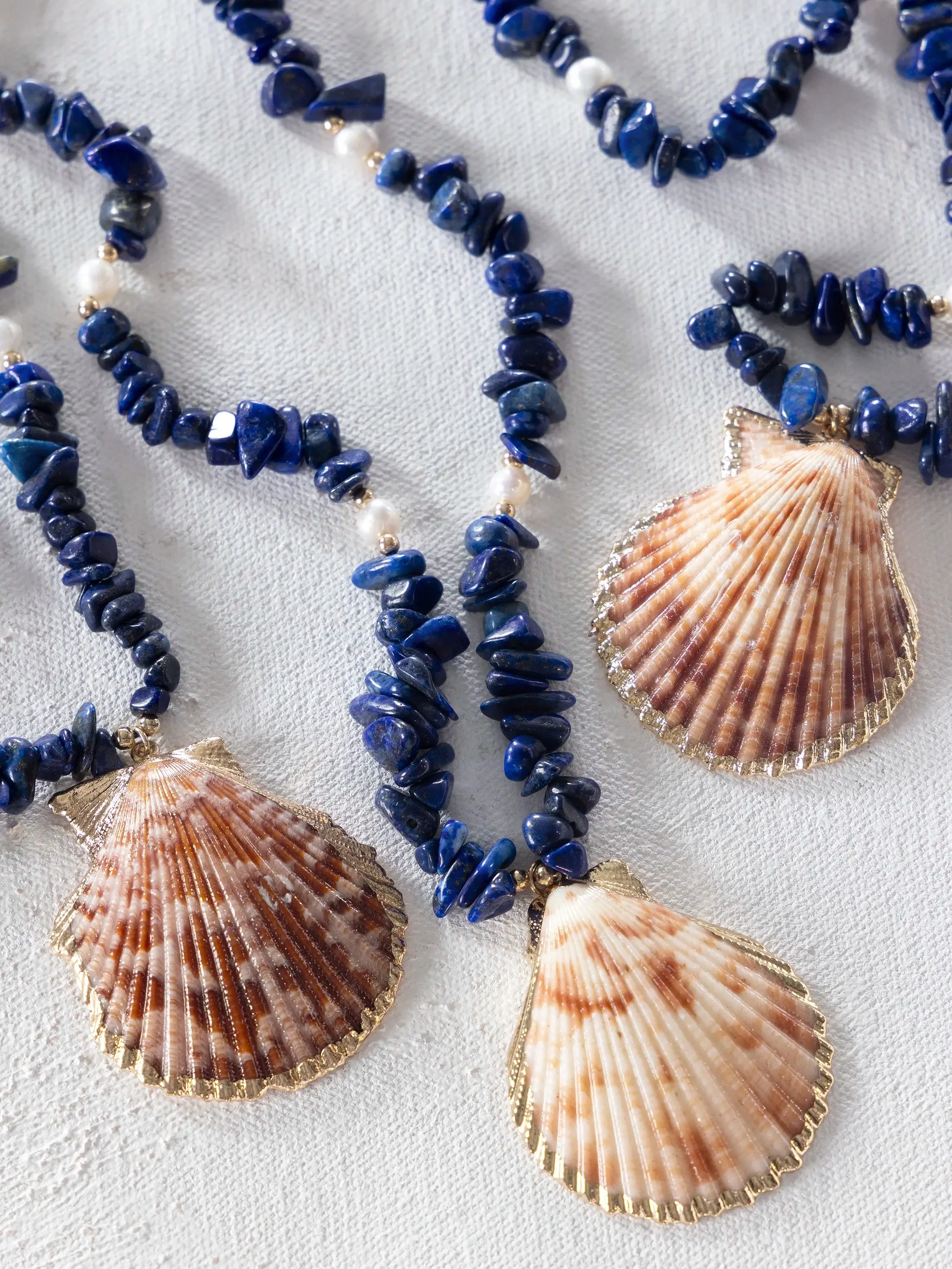 The beautiful blue stones and little pearl beads are cute on their own, but that natural scallop shell pendant is what makes this necklace sooo special!