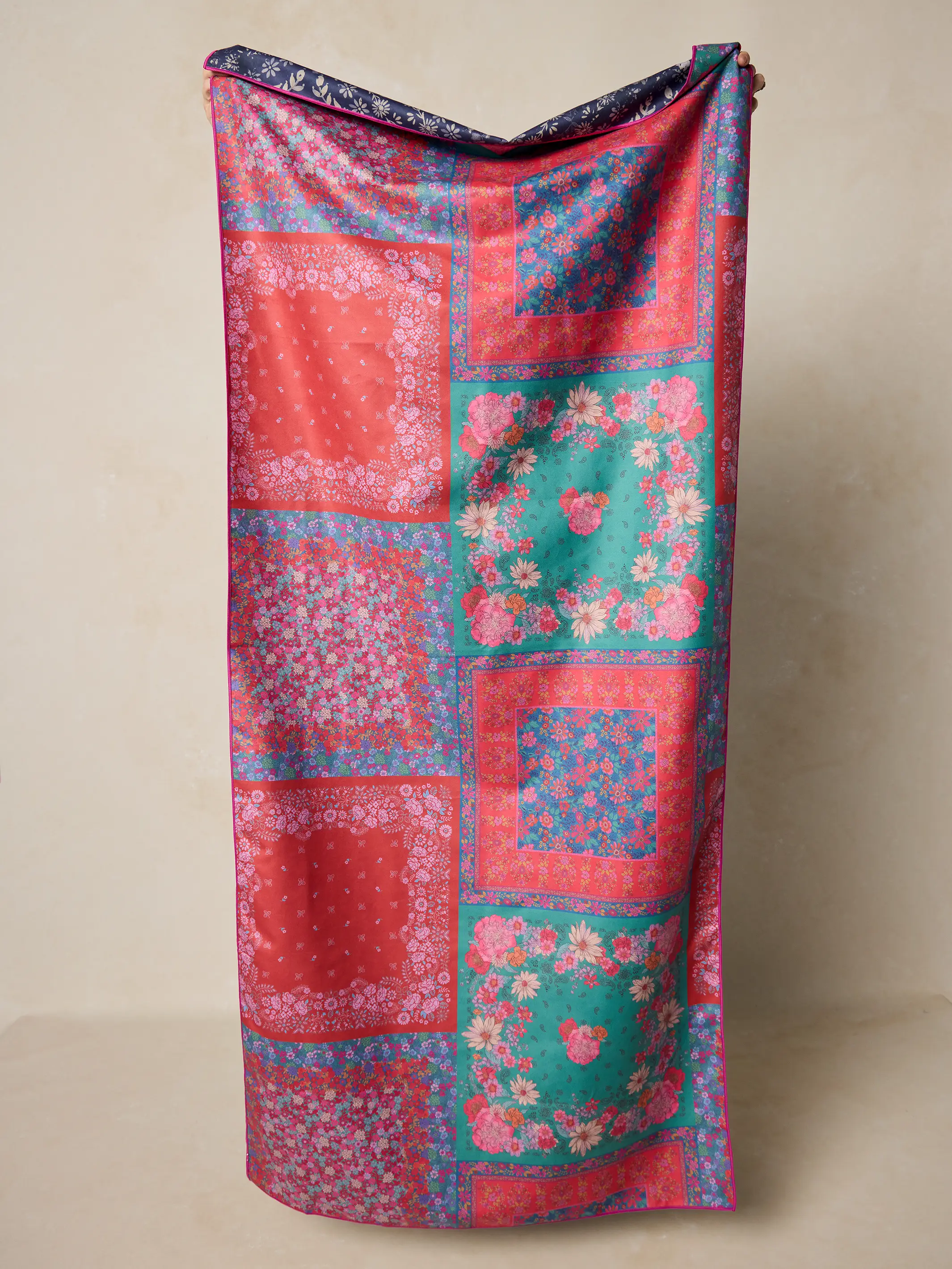 Double-Sided Microfiber Beach Towel - Diamond Bandana Navy