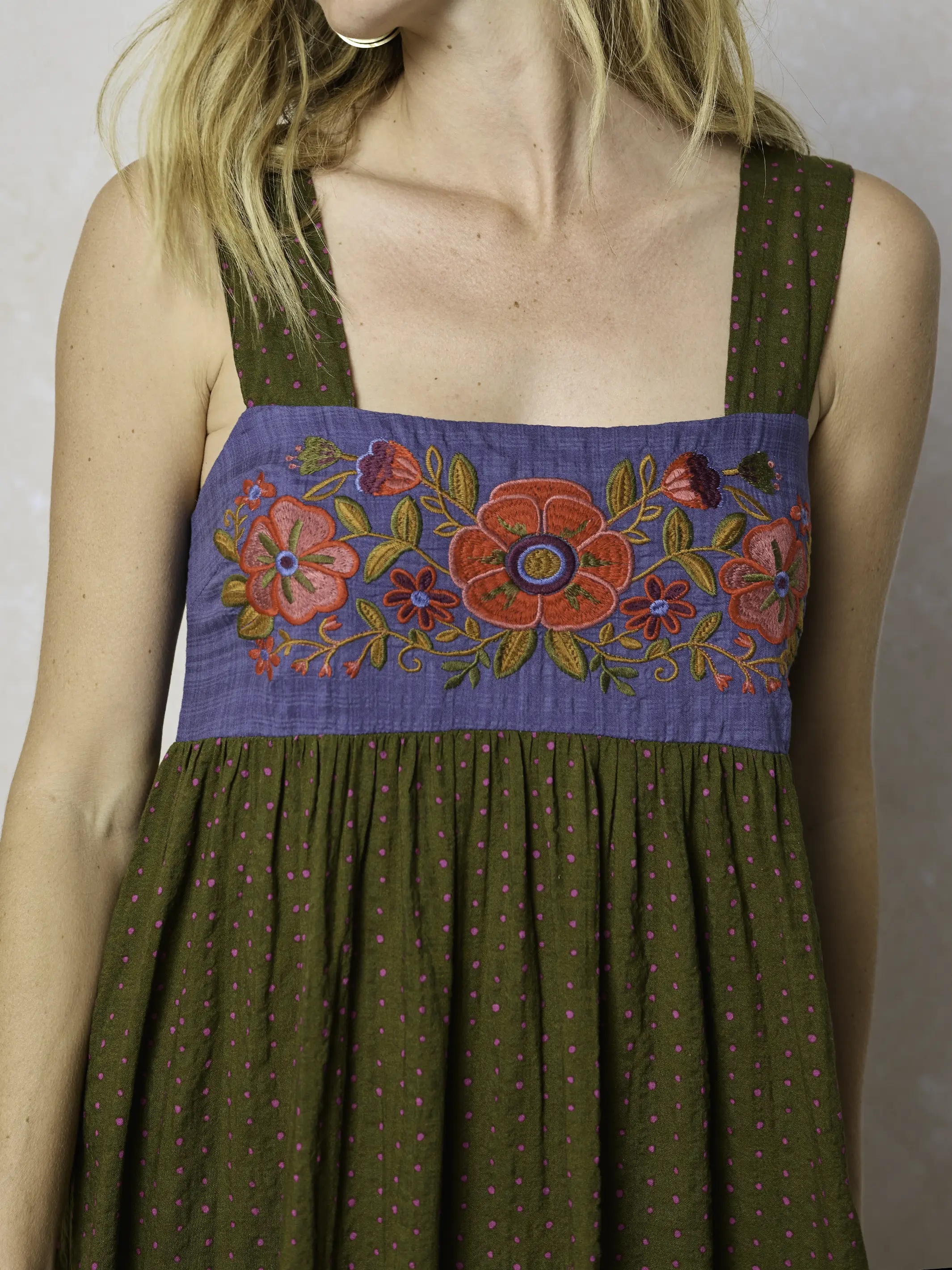 Embroidered Tricia Maxi Dress - Olive Polka Dot