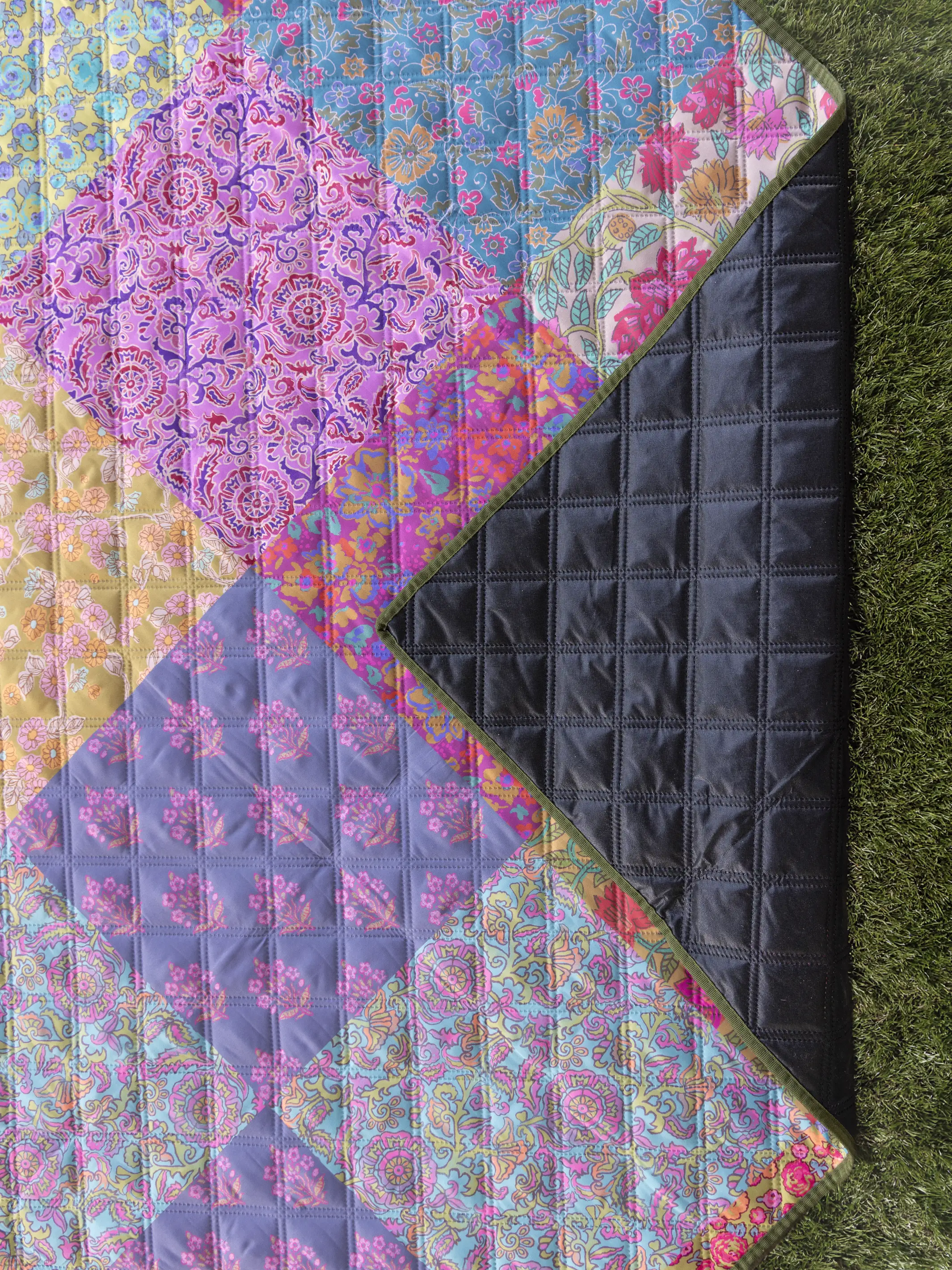 Picnic Blanket Tote - Bright Patchwork Zinnias