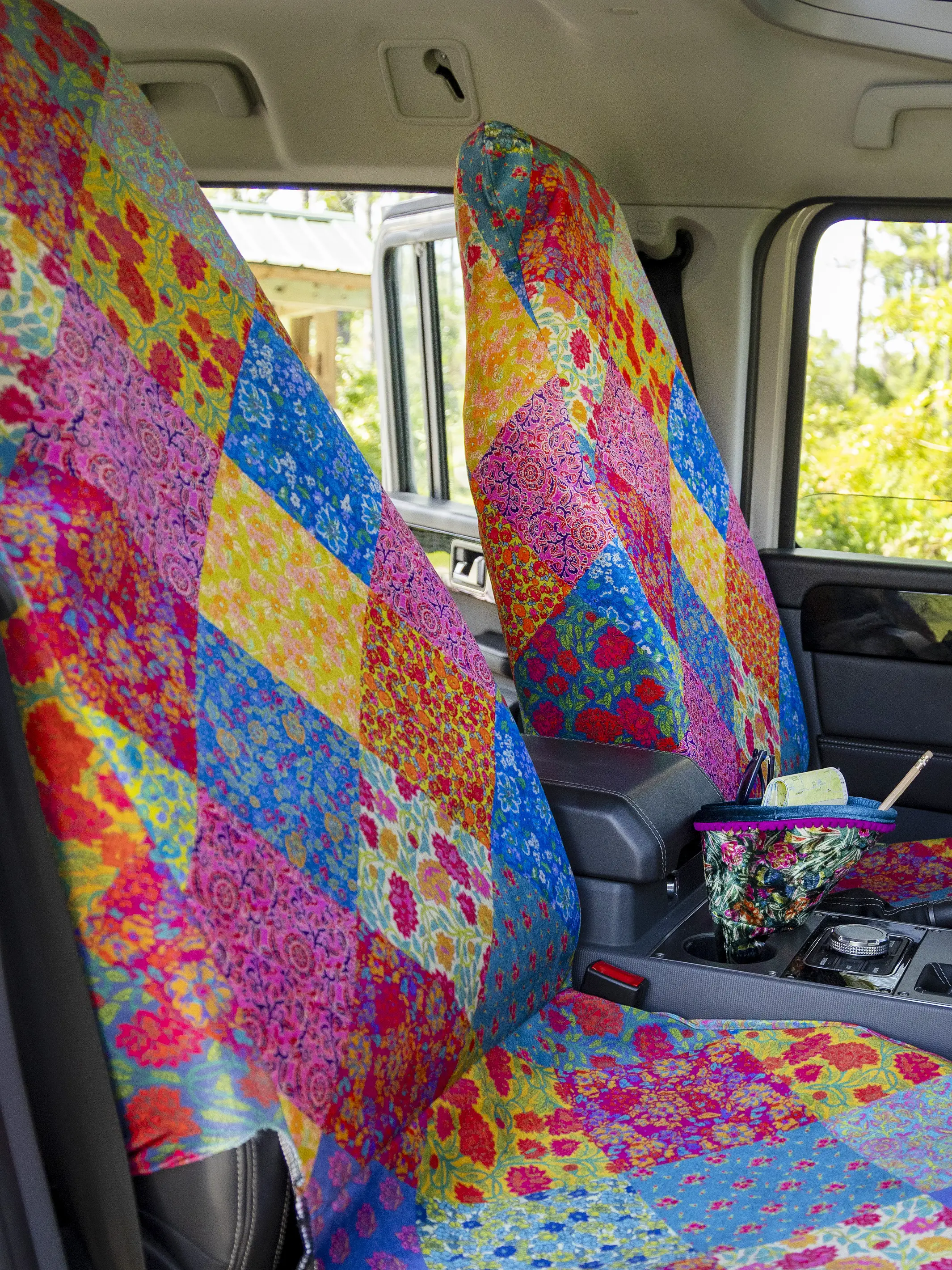 Velvet Front Car Seat Cover, Set of 2 - Rainbow Patchwork